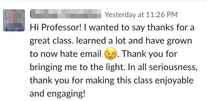 The vast majority of my former students enjoyed my teaching style and overall energy. It’s great when they pick up what I put down.