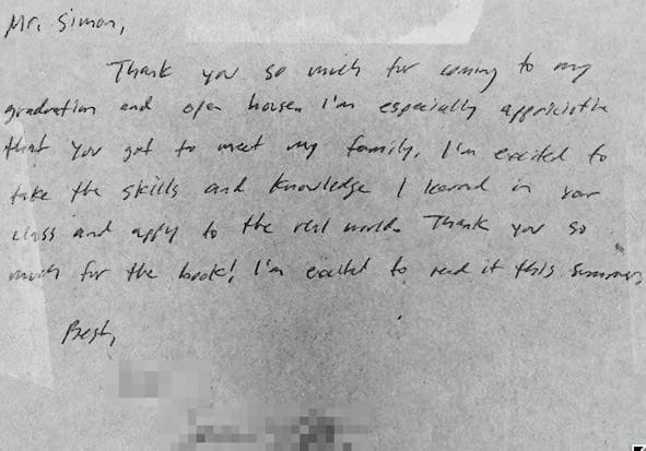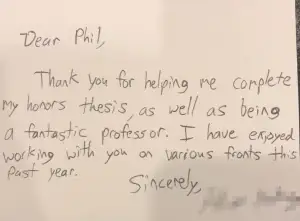 No, I don’t bat 1.000, but many of my students appreciate my teaching philosophy. I have sprinkled in some of their kind words throughout my site’s academic dashboard. To be sure, these mean a great deal to me—even more than the quantitative measures on my teaching evaluations. I especially enjoy receiving hand-written notes at the end of the semester.