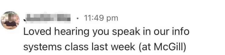 “After taking your course, I switched my major to information systems.”