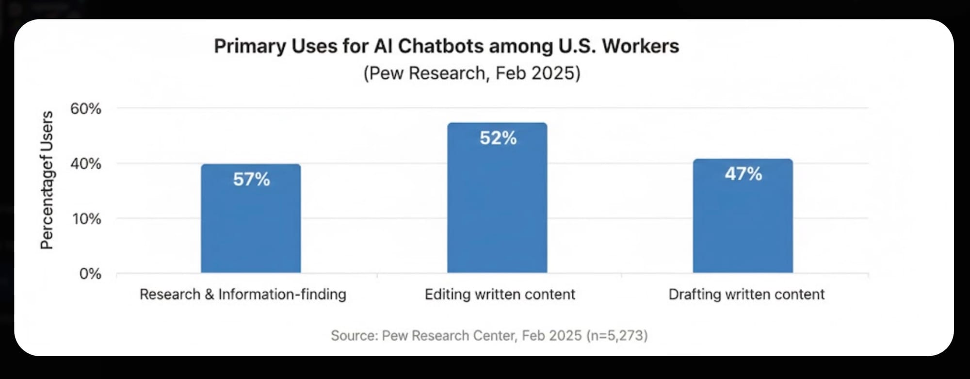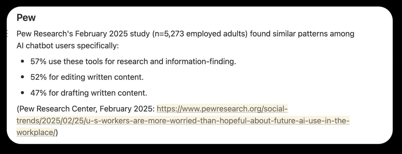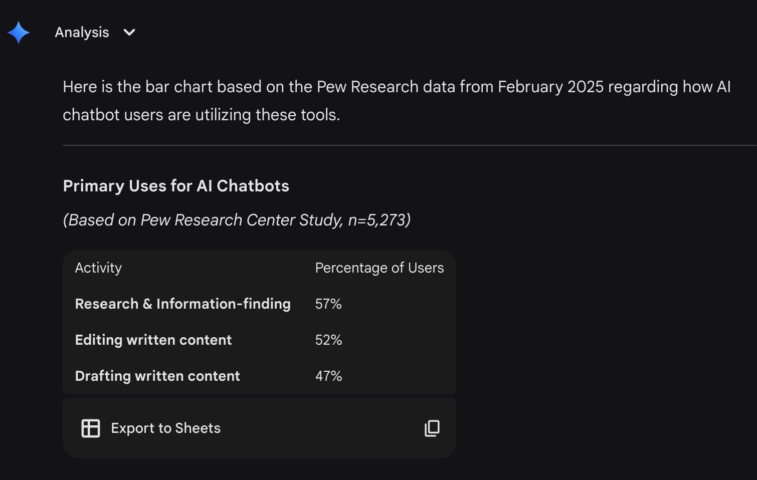 I used Claude's deep research feature to generate some recent surveys and studies on AI in the workplace. I threw the results into Notion, took a screenshot of one promising survey, and then crossed over to Gemini. Here's my initial prompt: