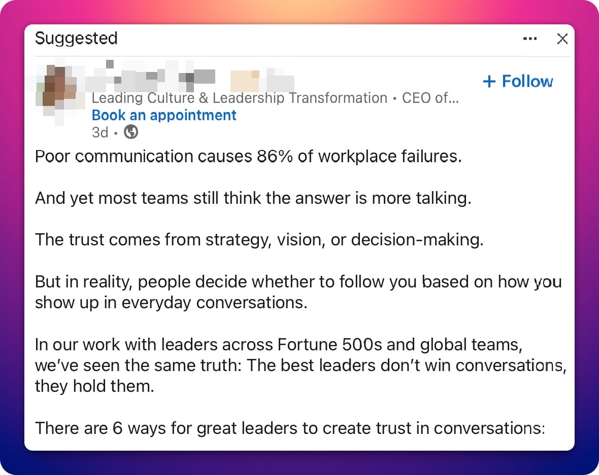 Perusing LinkedIn today, the following post came across my feed: