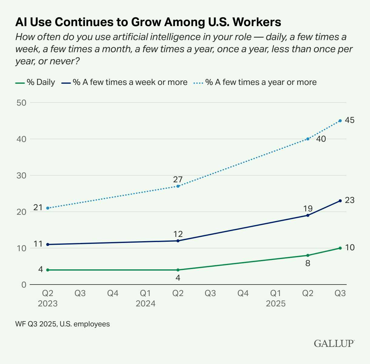 Here are some interesting stats from a February 2025 Pew Research study of more than 5,273 employed adults using AI chatbots:
