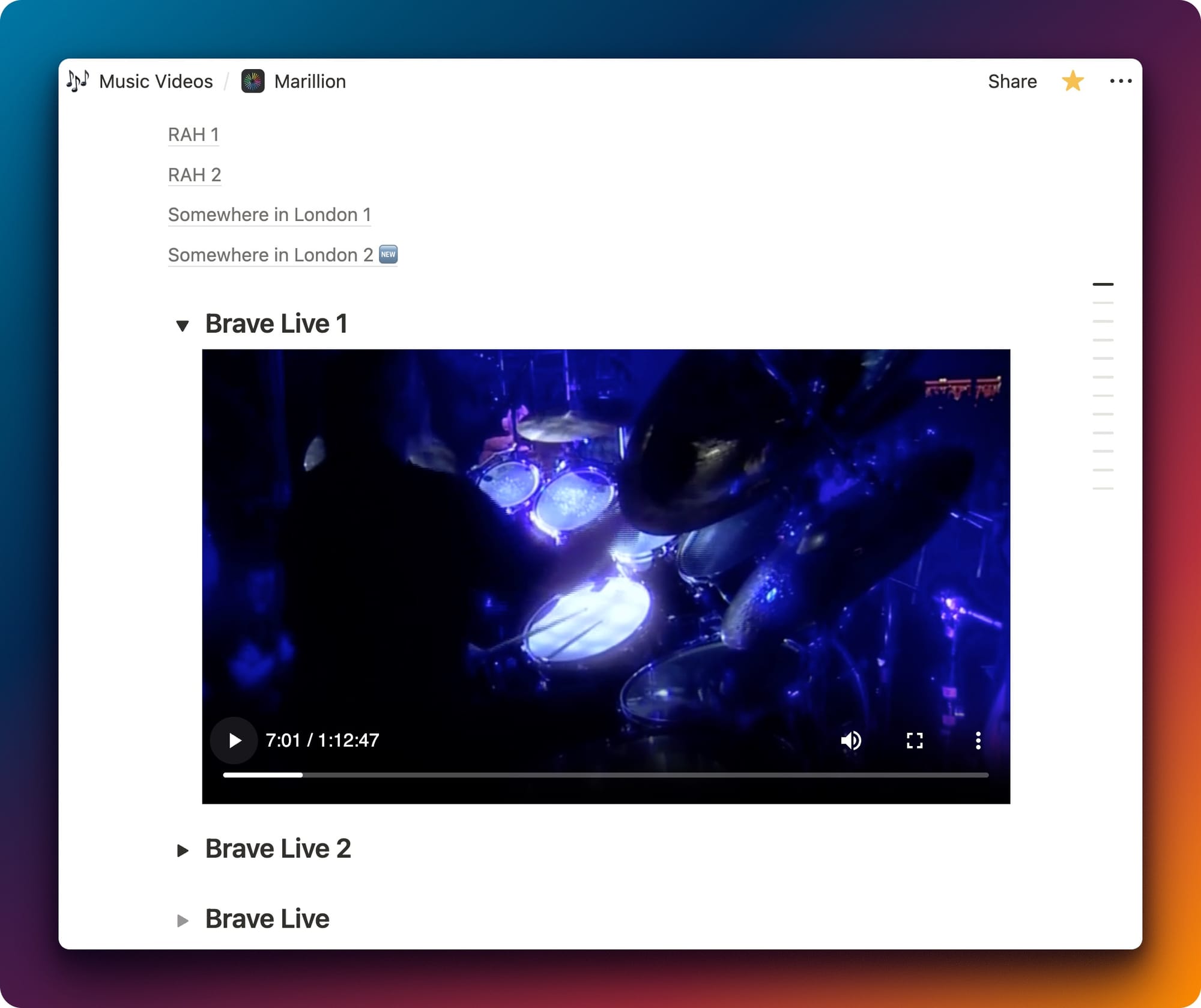 Rather than fight the machine, I just bring my concerts into Notion, the play button, and voilร !