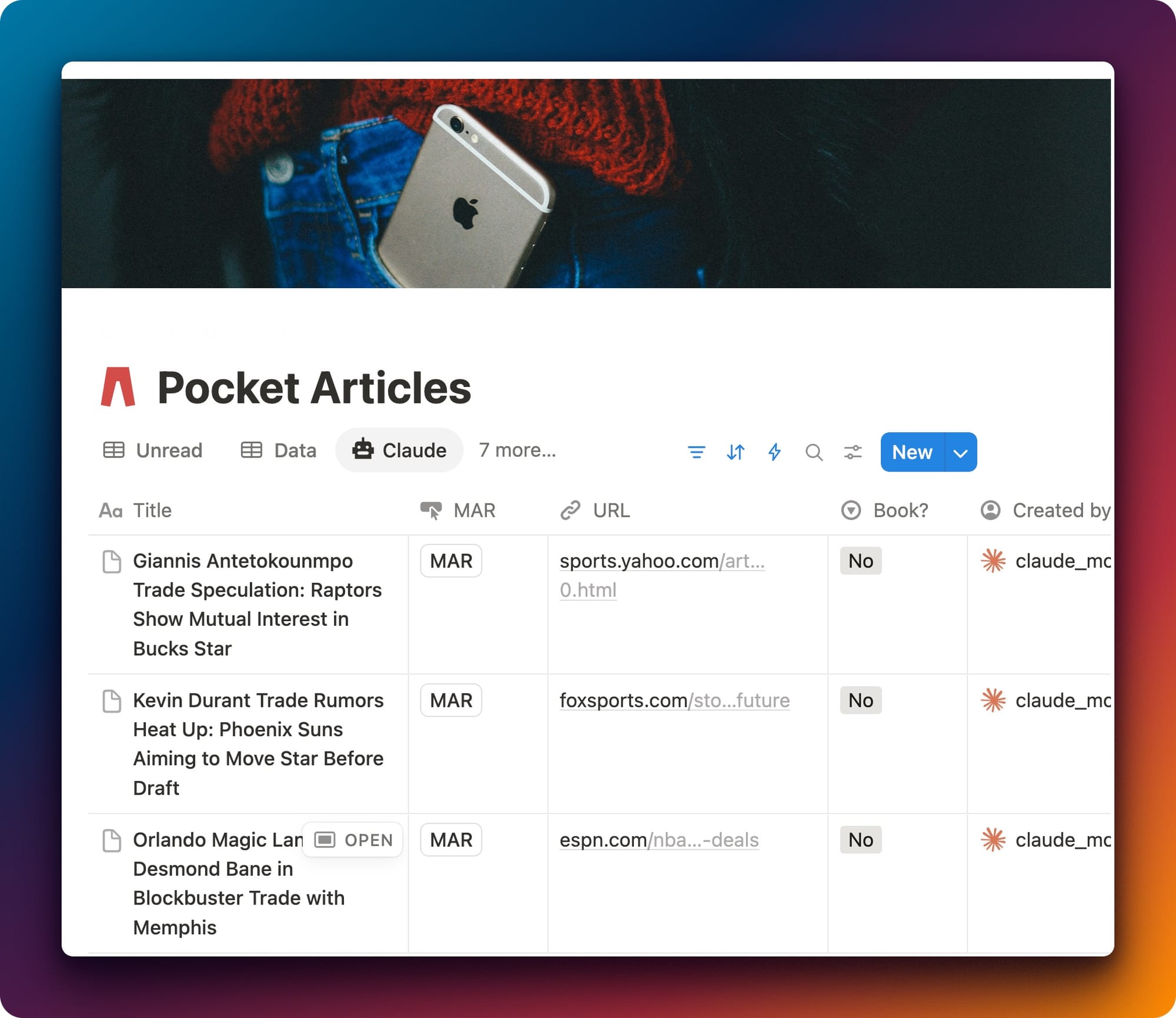 Now I use the Notion Web Clipper to send interesting pieces directly to a Notion database that functions more or less as Pocket once did:
