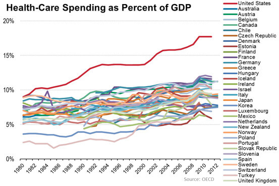 According to the Wall Street Journal, the US spends a great deal of healthcare. See for yourself: