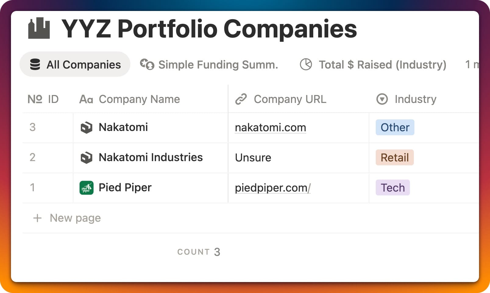 - How much have we invested in each company and industry by stage?
