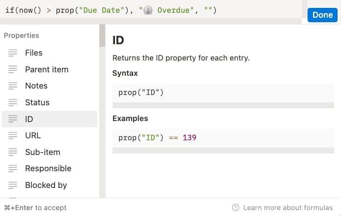 On this project, the team needs to complete about 100 tasks, yet the view above only shows the overdue ones. Hiding future tasks didn't take much effort thanks to Notion's รผber-useful formulas. I defined Past Due as follows: